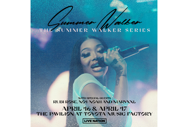 Live Nation Presents Summer Walker: The Summer Walker Series at The Pavilion at Toyota Music Factory on April 16 & April 17! Special Guests include Rubi Rose, NO1-HOAH, and MARVXXL. Tickets are available at https://www.ticketmaster.com/event/0C005C61B99F34B9